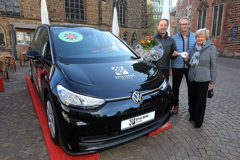Den verkaufsoffenen Sonntag in der Innenstadt wollte Herr Oliver Beenken aus Horn-Lehe ganz entspannt mit einem Brunch genießen. Auf dem Weg dorthin kaufte er eher beiläufig fünf Lose - in der Erwartung, vielleicht kleine Gewinne wie Erdnüsse, Socken oder Gutscheine zu erhalten - doch stattdessen hielt er plötzlich den Schlüssel zu einem vollelektrischen VW ID.3 Pure, gesponsert von der Spielbank Bremen, in den Händen. Entsprechend groß war die Überraschung: für einen Moment fehlten ihm die Worte angesichts dieses besonderen Glückstreffers.